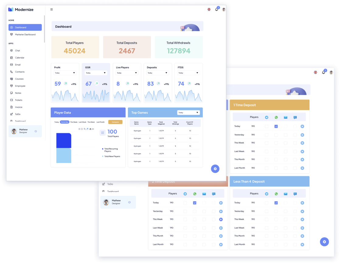 Empower your business with unprecedented control. Dice & Reel's user-based business dashboards put you in command, providing real-time insights, analytics, and customizable tools. Take control of your gaming enterprise, make informed decisions, and stay ahead of the competition.